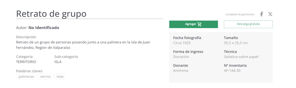 En nuestra búsqueda de información, encontramos que en el “Museo Arqueológico Padre Sebastían Englert” (MAPSE) se alojan esta y otras fotografías, la mayoria de Isla de Pascua, pero varias de Juan Fernández, como acreditamos en esta imágen.